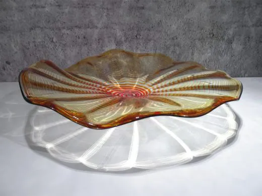 Diese große Glasschale ist zeitlos und gleichzeitig repräsentativ für einen modernen Wohnstil. Sehr zurückhaltend in der transparenten Farbgestaltung ist dieses Glasobjekt ein schönes dekoratives Designobjekt und schimmert bei Licht gleichzeitig wie ein Kunstobjekt.. Die nachgiebigen und geschmeidigen Formen und das Aufbringen der dünnen, gewundenen Farbbänder auf dem Glaskörper verstärken das aquatische Gleichnis dieser Serie. Verwenden Sie dieses Glasobjekt als Verzierung für Ihren Tisch und der herrlich bunte Akzent wird zu einem Blickfang.